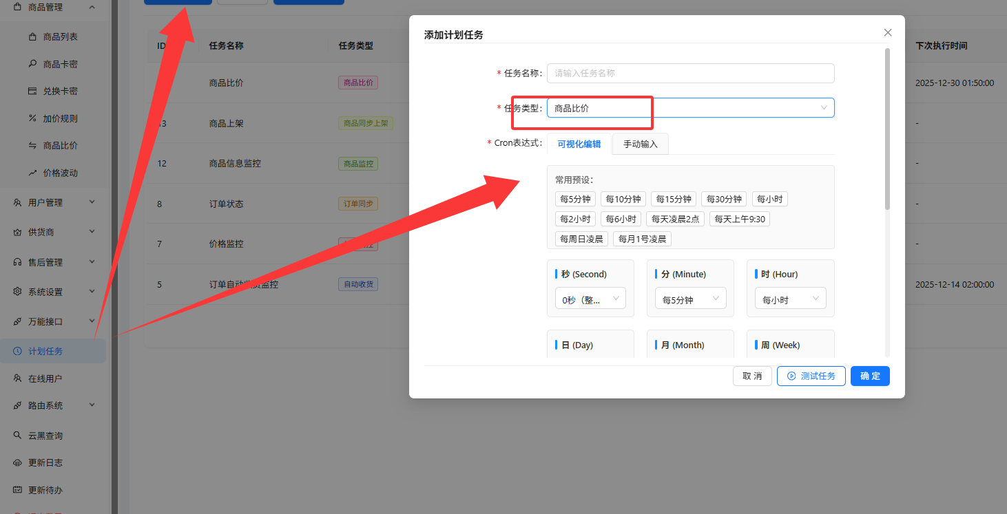 选择你要比价的商品和货源,配置好后打开计划任务,添加一条比价