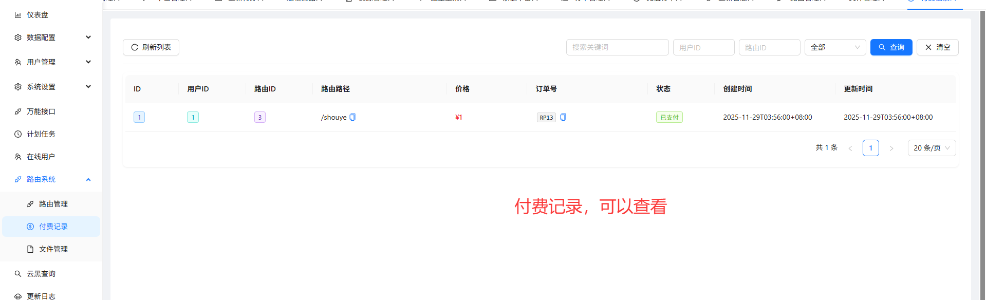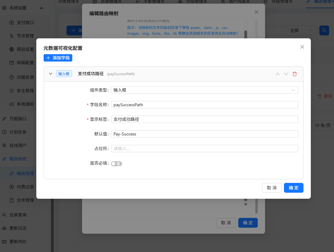支付成功后系统会根据路由找到你的路由配置中的元数据,自动重定向到:/#/ 元数据 paySuccessPath? 支付回调参数,需要传递后端验证订单是否支付成功