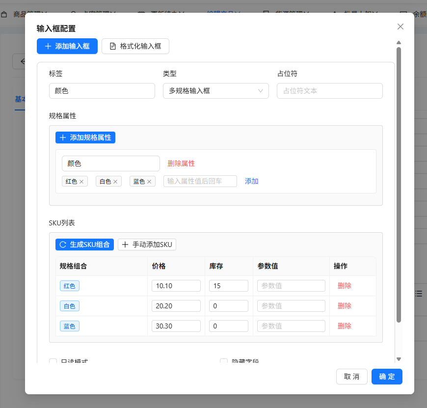 先创建一个多规格输入框