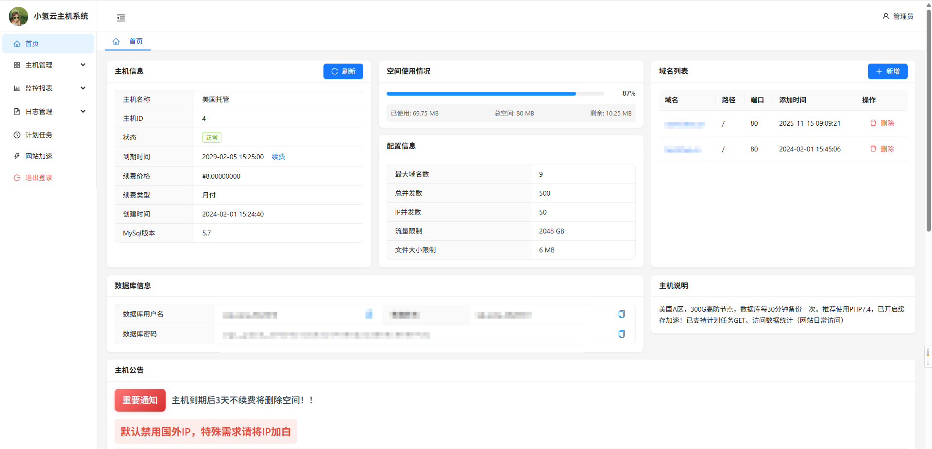 小氢云主机系统更新通知