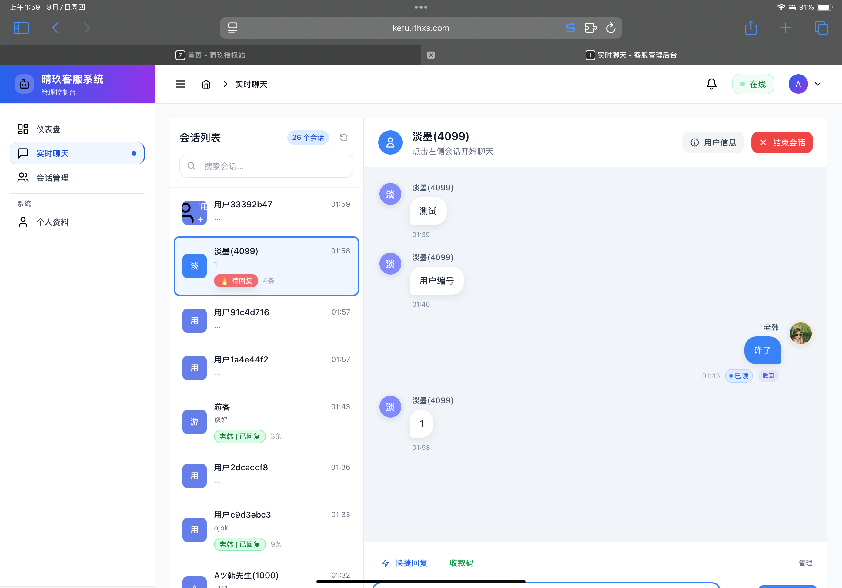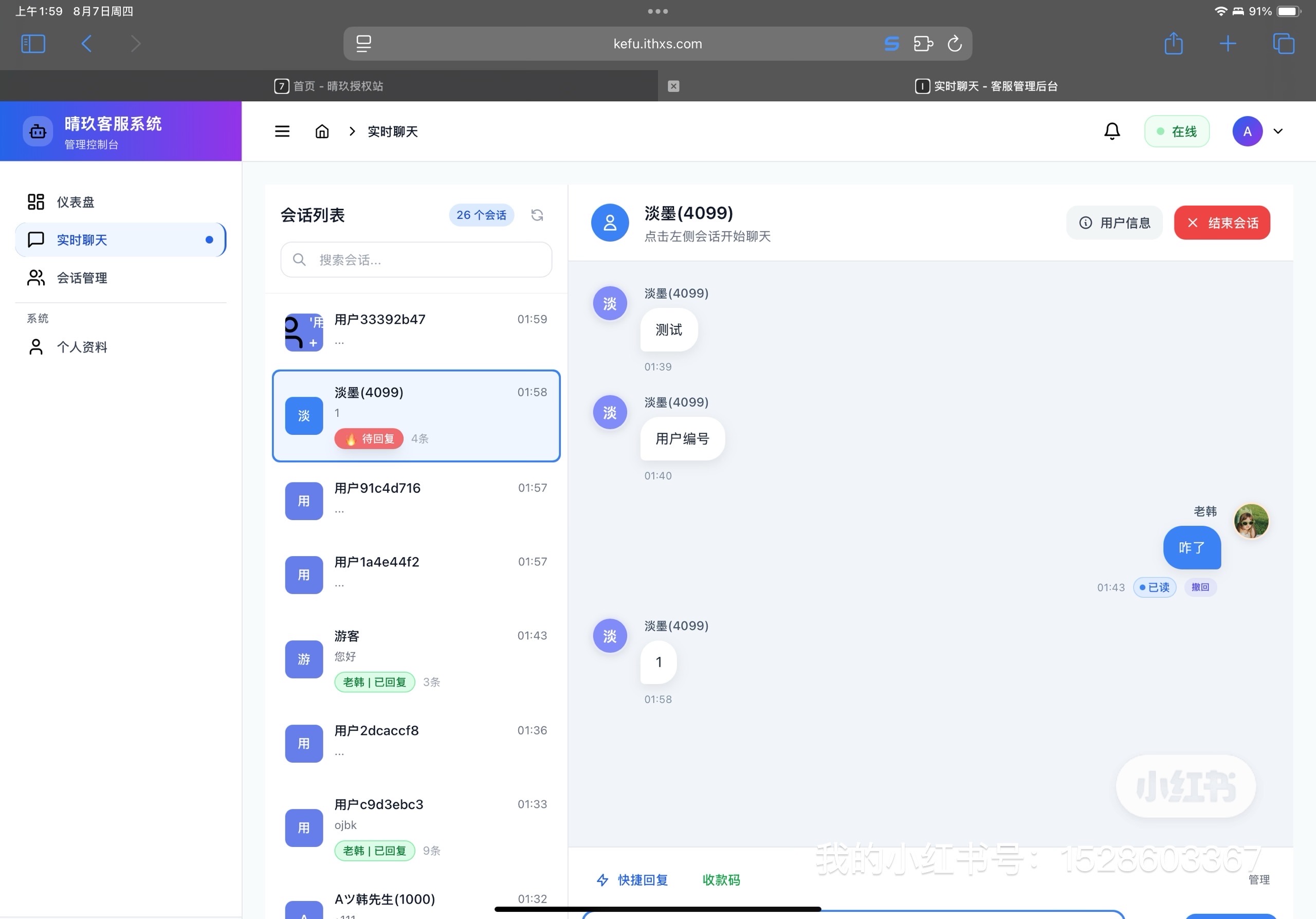 自定义兑换用户信息(意味着你接入的任何网站都可以获取当前用户信息传递到客服后台,客服可以看到你来自哪个网站,用户编号,昵称等信息。任何信息都可以)